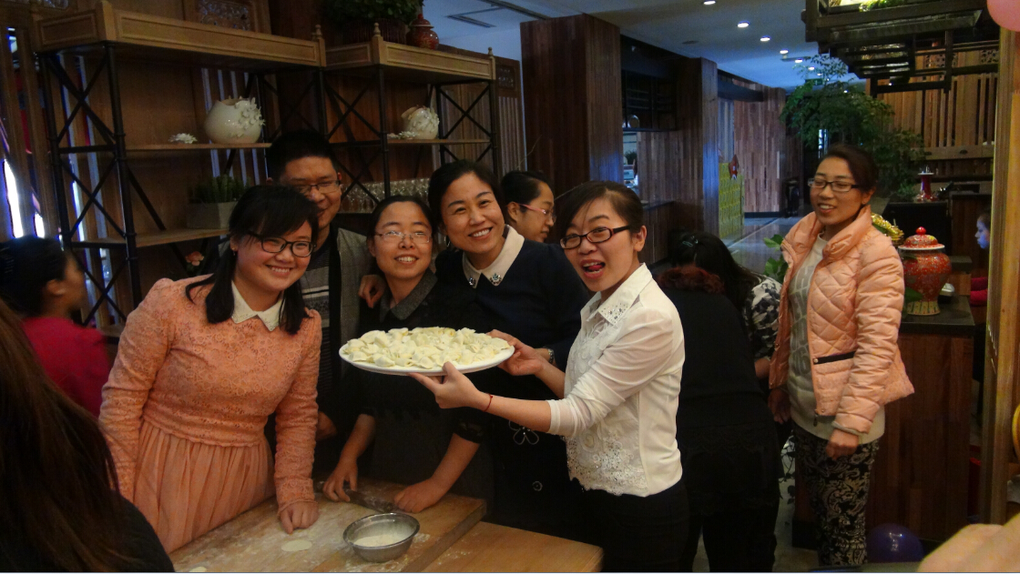今年的茶話會以全體家人同包餃子開場,有人搟皮,有人包餡,全都忙得不亦樂乎,雖然包出的餃子大小不同,但都是大家自己親手勞動的結(jié)果。